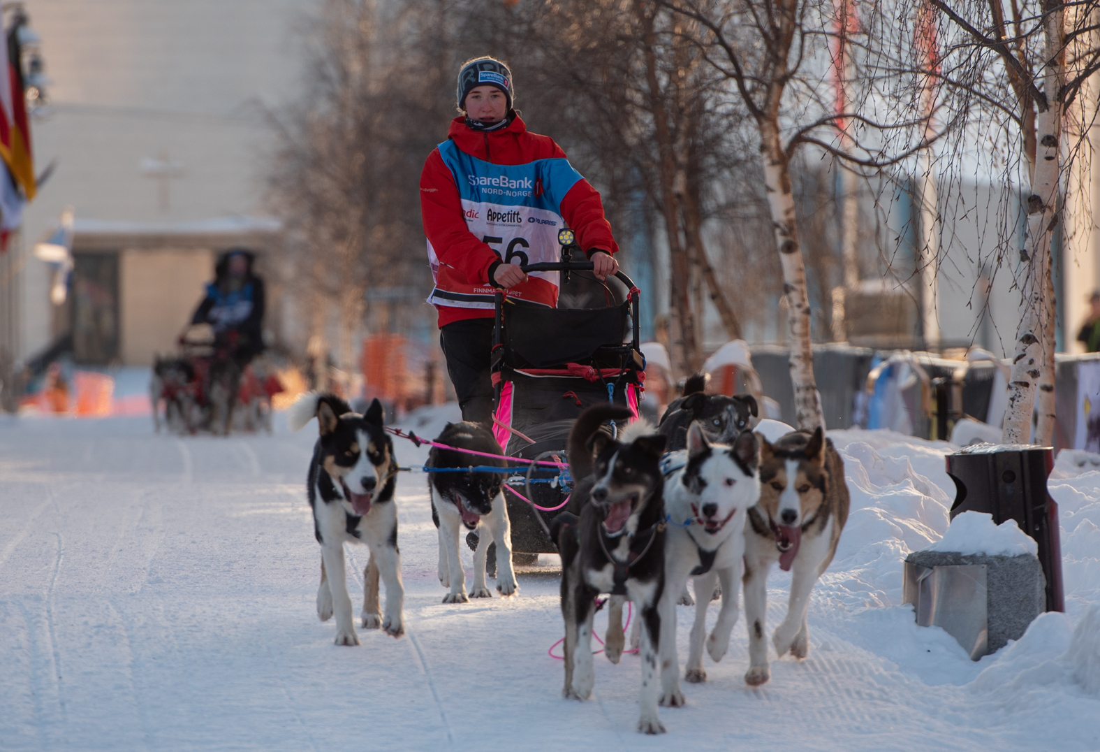 Kampen om andreplassen levde helt inn til målstreken i Alta sentrum. Maria Jøraholmen og Ronja Persson kom sammen opp mot målseilet, og det var altajenta Maria som kjørte best med sitt spann de siste hundre meterne mot mål.