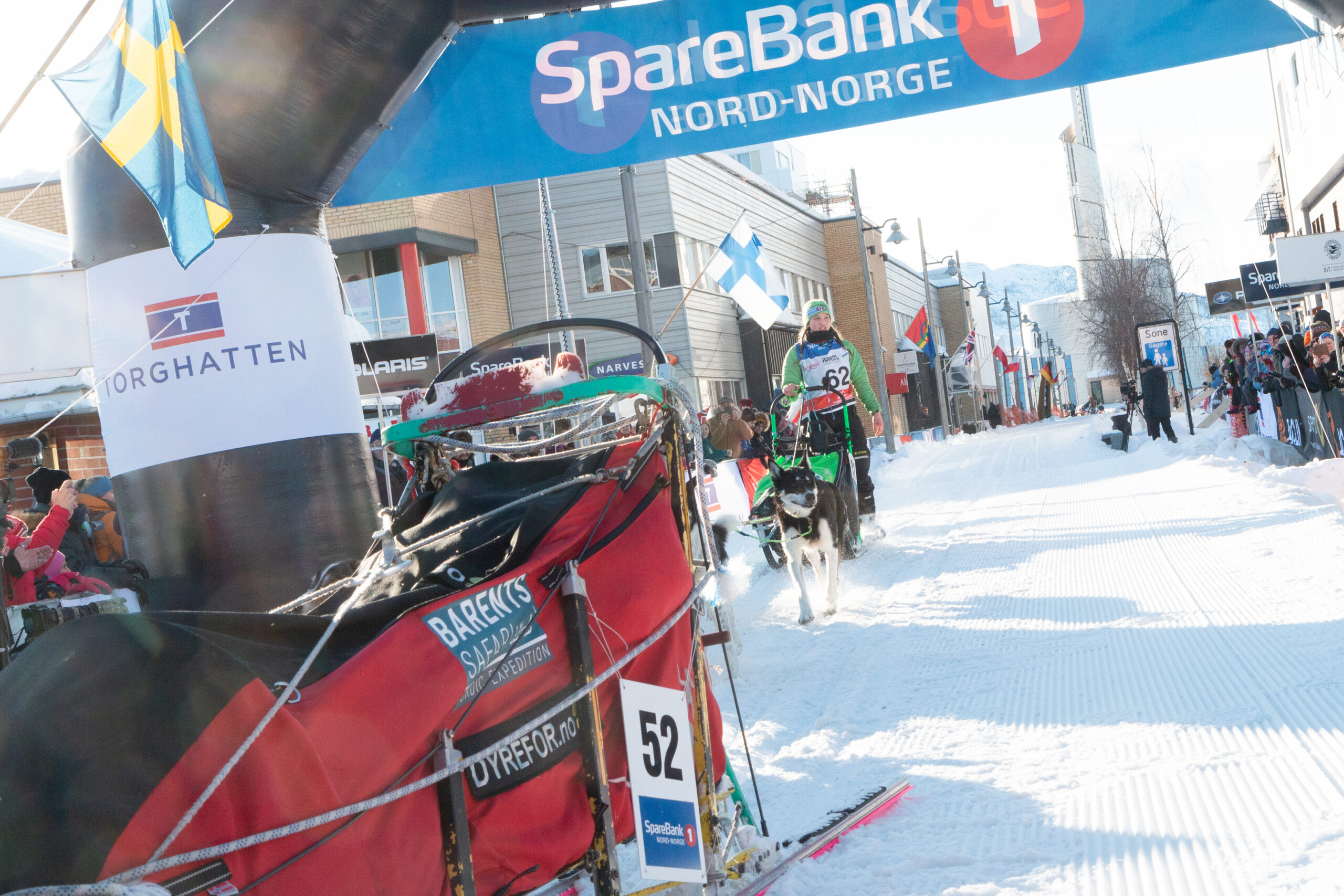 I Finnmarksløpet får juniorene den samme høytidelige målseremonien som de eldre kjørerne i 600 og 1200-klassen.