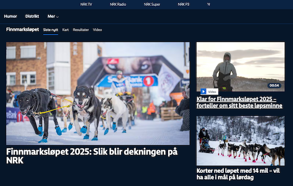 Statskanalen har et stort team som er klare til å levere. De er allerede i gang og du kan se flere reportasjer fra dem som vi har lagt inn i «Finnmarksløpet Live». Direkteadressen til deres egen nettside for Finnmarksløpet er nrk.no/finnmarkslopet