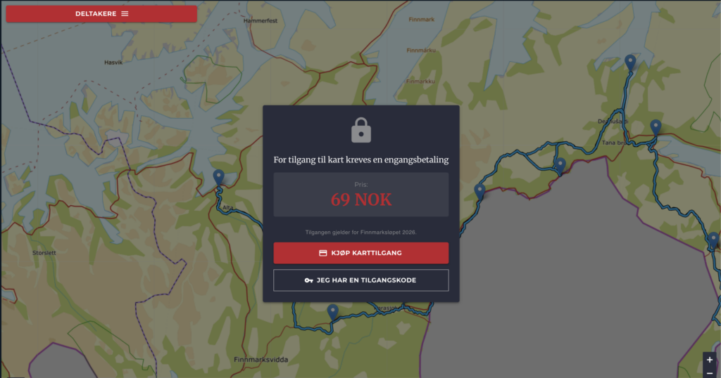 During Finnmarksløpet 2026, the official GPS tracking will be available behind a paywall. Access costs NOK 69.